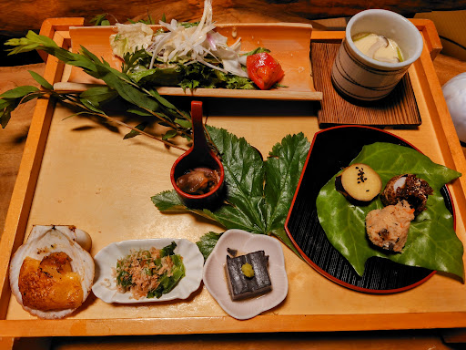 Read more平日の12時半頃お伺いしました。 ランチする場所を探していてヒットしたので、予約せずに行ったのですが大丈夫でした。入店したら、予約していますか?とまず確認されましたし、来店した他のお客さんも予約されていたので、予約したほうが確実かもしれないです。メニューにも事前予約のものがありました。 古民家を活用したお店です。こんなところにあるのかな?と思うような場所にひっそりとあります。店先から雰囲気は抜群です。お庭もあり、店内の縁側から眺めることができます。昼限定御膳の特選地魚膳とお子さま御膳をいただきました。 旅館のお夕食のような贅沢すぎる品々に驚きでした。品数もボリュームもびっくり。お刺身なんて1人分が2人分くらいの量です。お魚も新鮮すぎてまだ動いてました...。天麩羅も揚げたてサクサクでしたが、量が!とにかくこんなに?!と思うくらいで。炊き込みご飯の頃にはもうお腹がはち切れそうでした。 たまたま訪れたお店でしたが、満腹すぎる贅沢ランチになりました。 お子さま御膳も幼児の1番下のものにしたのですが、これまたボリューム満点!茶碗蒸しがすごーく気に入ったようで、私の分もふたつ平らげていました。たしかにお出汁が効いていて優しいお味で美味しかったです。 ボリュームはとんでもないですが、全体的に素材の味を大事にした優しいお味なので最後まで美味しく食べれました。 静かでゆっくりとした時間...