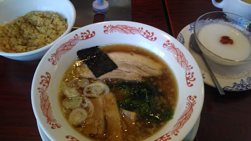 平日オンリー?の定食が安くて嬉しかったです。ラーメン、ミニ炒飯、焼き餃子確か三個、杏仁豆腐がついて1,089円?くらいでした。お得すぎる。席の真ん中に透明のビニールシート設置してありました。