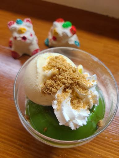 Read more抹茶プリンを食べました🤤 ほろ苦い抹茶プリンと、バニラアイスに黒糖がかかっていて、とても美味しかったです。 店内はカウンターとテーブル席が少々。 テラス席は広いです。 パークゴルフをするおじいと、グリーンを見ながら、のんびり時間を過ごせます。 閉まる時間も早く、臨時休業もあるの...