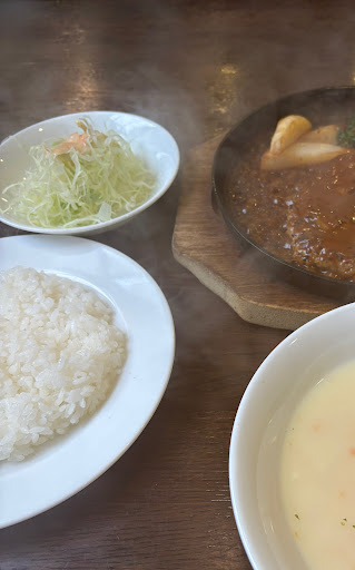 Read more久しぶりに来て、 今回もハンキングテンダーステーキ 260gセットを注文。 セットなのでスープ、サラダ、ライス付きです。