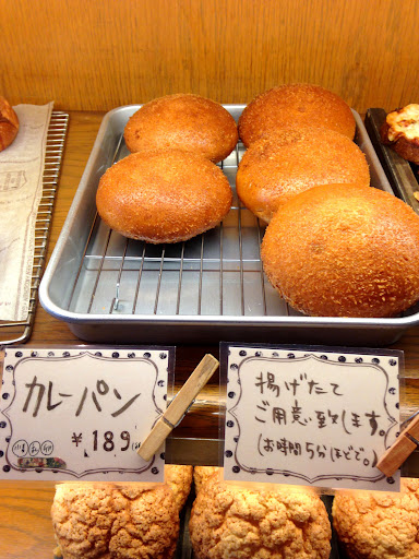 カレーパンは焼きたてで温かく、美味しいです。 パン生地の下側はカリカリに揚げられ、上側は少しソフトに揚げられています。 内側のモチモチも素晴らしい食感でした。 平べったいタイプの少し珍しい形のカレーパンです。 カレー屋さんとしても別でお店を出してもらいたいと思うくらいスパイシーで美味しいルーでした。 今まで食べた中でも上位にランクインします。 このパンを作っている職人は間違いなく天才ですね。 常人には作り出せないような、絶妙な味と食感を醸しています。