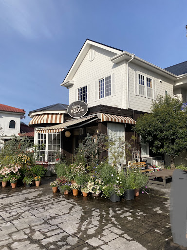 1軒屋パンのお店で、入口の植物たちやシンプルな店構えながらもセンスを感じる建物です。
