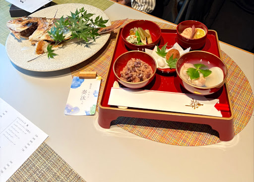 お食い初め会の日はランチメニューで6品を注文していました。それぞれ、藤ソーダや生姜モヒート、レモンサイダーで乾杯した後、お食い初め膳(椀ごとに丁寧に作ってあり)や尾頭付き真鯛焼きを一人ずつ、孫に食べさせる真似をして最後に白い石を噛ませるという式が終わり、食事会に移ると玉子豆腐が出て季節の野菜が彩りを添えて出汁の効いた餡がかけてありとても美味しいでした。次に経産牛と出汁がでて本当に出汁が感じられる一品でお肉引き立てられて美味しいでした。 魚料理は真鯛のポワレですが、焼いた真鯛と季節の野菜が盛り合わせあり、ソースと相性抜群で美味しいでした。それから肉料理は黒毛和牛の炭火焼きで、炭火の香りがよいお肉と野菜、ポテトとさつまいもが添えてあり、ソースがお肉を引き立てて美味しいでした。最後にデザートのお菓子は、一人ずつ違うお菓子を選んでいただきました。どれも手づくりで、お茶も冷水で抽出した深蒸し茶で美味でした。 料理からデザート、飲み物まで手が込んでいて 丁寧に作られているのが感じられました。 スタッフの方々もとても対応が良くて、雰囲気の良いお店なので,孫も泣くこともなく無事にお食い初め会を終えることができました。 それくらい静かな環境ですので、ゆっくり食事ができるので是非おすすめし...