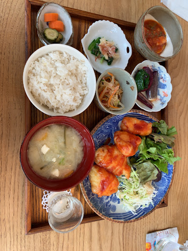 Read more12時に予約して伺いました。住宅街にある自宅解放のお店という事で少し早めに出かけて早めに着いてしまいました。予約時間に提供できるよう準備していたので、お待ちいただけるのならどうぞとお席に案内していただきました。 当日のメインはヤンニョムチキン。メニューは日替わりとの事でした。野菜たっぷりの小鉢はどれも美味しく、お料理提供の時にそれぞれの説明をしてくだしいました。ヤンニョムダレが辛すぎずいいお味で、隣の席の方が作り方を聞いていらしたので、デザートを持ってきていただいた時に便乗して伺ったらタレの配合費や、使い方まで教えていただきました。 また機会を設けて予...