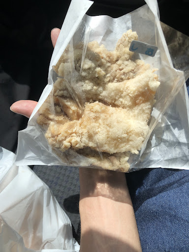 唐揚げがデカいと聞いて伺いました。 大きな唐揚げはオリジナル醤油味と塩味を、コロッケもいただきました。 大きな唐揚げは一つ350円と安かったので大きさもそれなりなんだろう…と思ってたら、なんと!手のひら大の大きな唐揚げが!デカい! え、、価格設定間違えてませんか?昨今の物価高の流れを考えると破格の値段! コスパなんて軽い言葉で片付けるにはもったいないほどのお得感。 大きさはデカいにしろ旨くないと意味がありません、少し疑いながらガブリと豪快にかぶりつくとニンニクが効いた醤油味で味がしっかり染みていてお米が進む〜!進みすぎる! 濃いすぎずバランスの取れた濃い味で食べてもなかなか減りません。二つ食べようと思ってたけど一つでおなかいっぱいになったので時間をおいて塩味をいただきました。こちらはシンプルな塩味でややスパイシー!お好みでレモンや胡椒で味変しながらいただきました。 とても美味しくて安くてありがたい! コロッケは普通でした。 焼き鳥も色々...