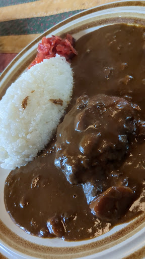 15分ほどしてハンバーグカレーが提供されました。 「辛い」というのがウリなようですが、自分にはちょうどいい辛さで、辛さの中に酸味と旨味がしっかりある、とても美味しいカレーでした。 ハンバーグはしっかり焼かれていて外はカリッとしつつも中はふんわりとしたとても美味しいハンバーグで、カレーとの相性もバッチリでした。 とてもおいしいカレーライスでした。