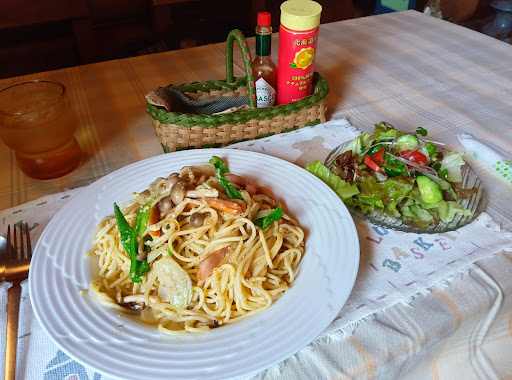 Read moreお昼過ぎでピークは過ぎたとはいえ、駐車場に車が止まっていなかったので大丈夫かな?と不安になりましたが、Openの看板が出ていたので入ってみると、オールディーズの音楽を聴きながら寛いでいるおばさんがいて安心しました。 このお店を選んだのは店内に古いオーディオが置いてある写真が目にとまったからです。実際に現物を見てみると40年ほど前に人気のあったモデルで懐かしかった。高級な海外メーカーではなく国内製で揃えているところも好感がもてた。 ランチは和風パスタとアイスコーヒー。パスタはとき卵がマゼマゼしてるのが変わってた。キノコやウインナーなど具材もいっぱいで、お皿てんこ盛りで満足です。アイスコーヒーは苦味少なめで酸味が引き立ってた。暑さで疲れた体...