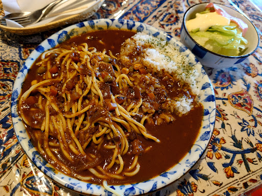 Read moreお昼に立ち寄りました。 気の良さそうなマスターが迎えてくれます。 人気のラマカレーのスペシャルセットとチャイティーをオーダー。 サラダが先に出てきました。レタスがパリパリ新鮮で美味い。 ラマカレーのスペシャルセットが出てきました。割とシャバシャバなルウとライスとスパゲッティの組み合わせとなります。 辛味も程よく(辛さが足りない方はハバネロソースあります)美味しかったです。 チャイティーも本...