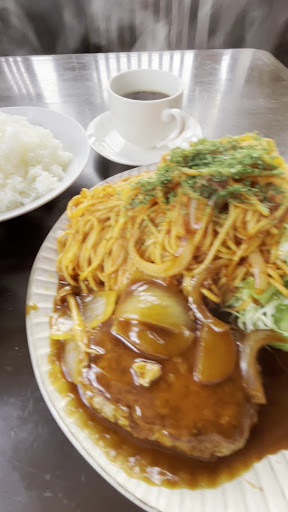 多分老夫婦の方がやっていらっしゃるのでしょうか? 平日の14時頃に行きました。 やっているか不安だったので記載の電話番号に電話したところ現在使われておりませんのアナウンス、、、 やっていることを信じて行ってみましたが、営業なかったらの札が! 入店するとお客さんは誰もいなく、優しそうなおばあちゃんが出迎えてくれました。 席に着くと腰を少し曲げながらカートで水を持ってきてくれました笑 お客さんも居なかったため、注文してから15分前後で注文商品とうちゃく。 量に圧巻さらました笑 お米がとても美味しく、ナポリタンはどこか懐かしい昔ながらの味、ハンバーグもデミグラスソースが濃いめの昔ながらの美味しさ。 クリームソーダも懐かしい感じの味でとても満足でした! きっと混んでいるとキャパオーバーになり断られることもあるだろうなぁ〜って口コミを見て思いましたが、接客してくださるおばあちゃんは優しくてとても笑顔のかわいい方です!