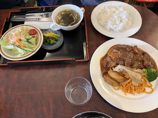 Mother and son run this quaint shokudo restaurant. We ordered the hamburger set (largest portions I’ve seen in Japan yet), the miso tanmen and beef curry. Everything was large and very delicious. We arrived late after sightseeing and were glad to be able to lunch at 13:45. They asked us questions about whether we came to appreciate the cherry blossoms at the shrine and we asked questions of the chef who understood English well. The exchange of food and recommendations for where to find a drug store and what flowers would be blooming still or soon left me feeling warm, and appreciative in my...