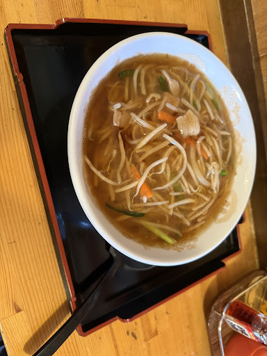Read more伊佐須美神社参拝後にお食事処を探していたところ、こちらのお店を発見し、立ち寄らせて頂きました。 店の近くに無料駐車場があるので、車で来られた方はそちらに駐車をおすすめします。駐車場から歩いてすぐ左の角に見える赤い屋根が目印です。外観から趣きのある佇まいにわくわくしながら店内へ。 店内は古き良き時代の食堂という雰囲気でした。店員さんの愛想もよく、接客もかなり丁寧でした。 今回注文させて頂いたのは、もやしあんかけラーメンです。たっぷりのもやしとちぢれ麺に絡んだピリ辛のあんかけスープに普段少食な私も箸が止まりませんでした。 辛さも、辛いのが苦手な私も全然食べられるぐらいです。むしろ食欲を増進させる程よい辛さ。麺の長さも丁度よく、もちもちとしたコシのある麺でした。もやしもシャキシャキと歯ごたえがよく美味しかったです! 会津美里にまた来ることがあればリピートし...