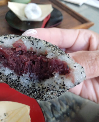○ごま 口に入れたのが、購入から24時間経過。やはり餅は初日に比べたら固くなっており、通常の市販同様になってしまったが、胡麻の風味は残ってました。