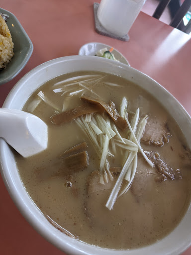 Read more豚骨チャーシュー麺+五目チャーハンを注文。 豚骨は本場とは違うクリーミーな感じ。そこに胡椒が元々入ってる。麺はちぢれっぽい。食べやすく普通でも1.3人前の量に感じたのでかなり満足。ただマイナスがあり、スープに元々胡椒が入ってた。胡椒を入れない人間なので。胡椒じゃないスパイスの可能性もあるけど多分胡椒。それとチャーシューが写真より薄い気がする。もう少し厚く。 五目チャーハンは写真通り。しっとりよりのパラパラ。変な味付けとかなくThe町中華。