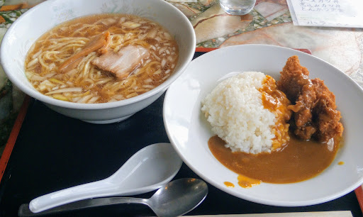 Read more本当に営業してますか?位のお店です(笑)暗い店内に恐る恐るDOORを、、、 カラーン(!!!) ビックリして、昭和の喫茶店みたいな店内に。おば様が、いらっしゃいませーと。 やっててよかった(笑) 奥の窓際は三段下がってて、窓ベリで喫煙可能です。 雰囲気は、昔の喫茶店だな!! ほんとにラーメン食えるのか❓と、思いながら、ランチ有りますか❓と、言ったら、ランチ来ました(汗) 今日は、ラーメン🍜&カツカレーですね。 600円です。 安い‼大丈夫か?つーくらい安いね。 味は、ラーメンは、甘みの強い美味しいラーメンでした。ネギは玉ねぎ。カツカレーのカツは揚げたてサクサク。美味しかったです。 廃墟じゃない❓と、思う位の、外見と。 お昼時間帯だけの営業なので、星は4つです。美味しかったですよ! 土曜日が、休みだったかな? 空いてるお店は穴場的で良いです...