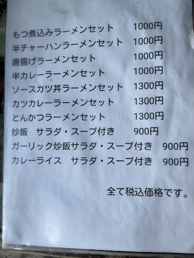 メニューはラーメン屋のメニューです。 醤油ラーメンや味噌ラーメンなど一般的なメニューからソースカツ丼など会津名物もしっかりあります。