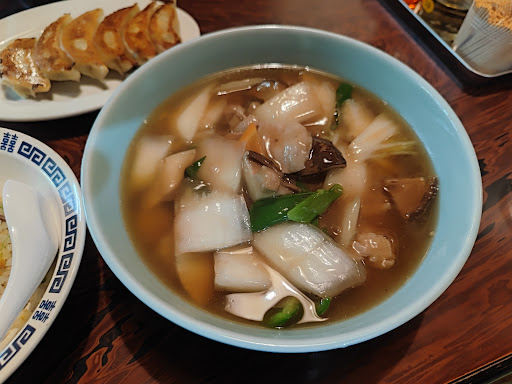 うまにラーメンなんだろうって思って注文したところ、餡掛けラーメンみたいな感じでした!野菜たっぷりで美味しかったです。 プラス300円で半チャーハンつけられて、一般的なチャーハンって感じです笑美味しかったです。 自家製餃子もふわふわで美味しかったです。