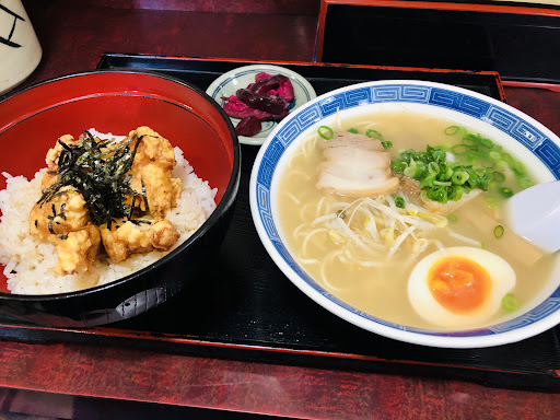 Read moreお昼にふらっと立ち寄る。 メニューはカウンターの上に木札がかかっており、ラーメン定食を頼む。 唐揚げをご飯の上に置き、甘いタレをかけた丼、漬物が付いてくる。 全体的に結構優しい味です。 カウンターに置いてある赤い醬のようなものを入れると自分には丁度いいかな。 唐揚げ丼も優しい味。 地元の方々が多い印象。 水槽でユラユラしているのは山椒魚?ウーパールーパー? 外に自転車用のスタンドがあったから自転...