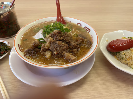 Read more少し前のオープンだけど初来店 まだ18時前ということもあり店内2組ほどででした 水の配膳とともに「ご注文お決まりですか?」 いやいや、着席、メニューを開いてないのに水配膳早々にいくらなんでもまだやろ! そして水がとんでもなくぬるい、デーブルに置かれているポットには氷が入っているようなのに、この生ぬるい水を飲み干す勇気がなく交換をお願いしたら氷入りが出されました(???) ラーメン、セットのチャーハン、唐揚げ等はどれも熱々で美味しい、ただ昔はもっとボリュームがあった様に記憶してるが今どきそれは贅沢か? “ニラキムチ、紅しょうが、ヤンニンはお申し出ください”と張り紙されていたので途中、味変で依頼。「薬味ください」が聞き取りにくかったのかヤンニンのみ持ってきた「いや、あの、ニラキムチとかも」と言うと今度はニラキムチだけ持ってきた。もう面倒くさくなって紅しょうがはあきらめた。「3種セットで配膳すれば良いのに」と思ったが昨今のSNSへのテロ動画投稿の影響とかでこう言うのがテーブル常備から消えてしまったのは残念だ。 そうそう、ニラキムチ美味しいんだがニラが刻まれてなく大きすぎる、そしてそれを“レンゲ”ですくい取るって難易度高いんだが?ここは“トング”なんじゃないかなぁ~ 味変も済ませ無事に完食、ご馳走様でした。 次からはい...