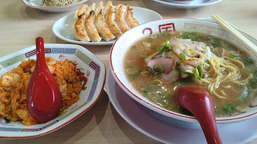 Read more昔々、明石の国道2号線沿いに屋台を出していた頃には飲み会の〆にわいわいがやがやとみんなでこのお店のラーメンを食べたものでした。 お酒の後なので当時は美味しいのかそうでないのか全くわからずに只々みんなでラーメンをすすり、このラーメンを食べ終わったら楽しい時間も終わりかぁ…という気持ちになっていた事だけは鮮明に覚えています。 しばらくすると屋台はなくなり伊川谷のお店に数年に一度のペースで思い出したように行くようになりました。 もやしがてんこ盛り、チャーシューが惜しげもなくトッピングされていて麺に到達する頃にはお腹いっぱいになってしまい豚骨スープ(か?)の独特の匂いが充満する店内が苦手で自らはあまり足は向かず家族や友達が食べたがると同行するという程度でした。 大蔵海岸店のラーメンは3年前に初めて食べて今回で2回目でしたが、スープも量も麺の太さも丁度良く美味しくいだきました。 今回はランチタイムだったのでキムチ炒飯とにんにく炒飯に餃子とラーメンの付いたセットを2人で注文、キムチ炒飯とにんにく炒飯をそれぞれ味見しながら完食。どちらもしっかりパラパラに炒められていてラーメン屋さんの炒飯、という感じで美味しかったです。 ラーメンは麺もスープも飽きる事なく食べました。 餃子も美味しかったけれど満腹度を考えると次は炒飯とラーメンだけでじゅうぶんかな…と思いながらお店を後にしました。 「男子のラーメン屋さん」というイメージが強いお店でしたが中年女性の私でも時々食べたくなりそうなお店になっていました。 屋台のあの頃から人気のラーメン屋さんなのにどんな味だったのか… 舌が全く覚えておらず懐かしいという感覚もなくて実際には伊川谷のお店で食べ初めてからの記憶しか残っておらず自分で自分が残念で仕方ないです。 食べたい衝動に駆られる頻度はそんなに高くはないかも知れないけれどまた食べたくなった時にはパラパラ炒飯と豚骨スープ(か?)のラーメンをよろしくお願いします。...