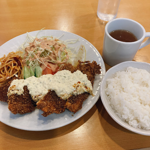 Read more気になっていたお店やっと行けました⤴️ 土曜日の12時過ぎに食事に行きました💡 混んでるかなって思っていましたがそんな事もなく、すぐ席に着けました😄 食事をしていたらぞくぞくとお客さんが入って来られたので運が良かったのかな? 席も禁煙と喫煙と別れていて煙草を吸う方も吸わない方にも優しいですね😀 頼んだのは日替わりサービスランチです👌 この日はチキンカツでした、唐揚げサイズになっていたので食べやすくて美味しいし頼んでよかったです⤴️ 740円でボリュームもあって女性だとお腹いっぱいになると思います💡 食事の最後にコーヒーかアイスも付いているので嬉しいですね😊 ま...