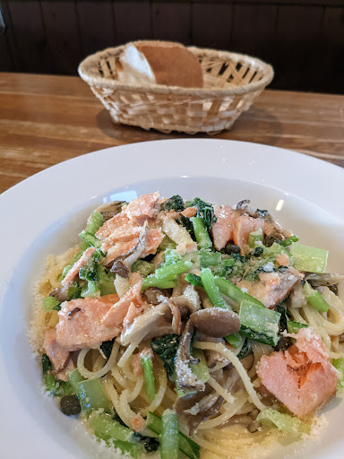 Read moreパスタが美味しいと聞き、ランチで行ってきました。 入れないときもあると聞いていたので心配したのですが、平日だったからか、空いていました。 駐車場が小さいと聞いていたので、マックスバリューの有料駐車場に入れました(買い物をすると無料になります) カウンター席のみですが、いい雰囲気だったので、落ち着いて食事することができました。 僕が注文したのは、「アンコウと野菜のトマトソース」 野菜の火加減と塩加減が絶妙で、とにかく野菜が美味しい。 もちろん、パスタも茹で加減が絶妙で美味しかったです。 ただ、食べ進んでいくうちに、塩辛さを感じてしまったんだけど…僕だけかな? これに、パンとコーヒーと焼き菓子が付くので、お得感があります。 ...