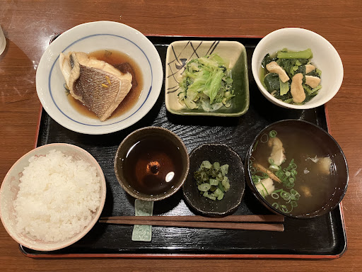 キャベツの酢味噌和え、煮浸し、とろろの入ったお吸い物、鯛の煮付け、お漬物とご飯 味の方はお店の雰囲気も合わせて実家を思い出す優しい味でした 母や祖母が作ってくれそうな味です これで700円は安いと思います これでは足りなさそうと思われたのか、追加で焼いたウインナーと野菜を持ってきてくださいました