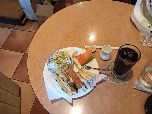 サンドイッチモーニング ハムタマゴ(関西風の玉子焼き) のミックスサンドですが どこぞのコンビニチェーンと違い 奥までしっかり具材が詰まってるのと マヨネーズをちゃんと使ってます