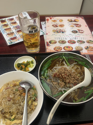 娘の頼んだ日替ランチは、高菜ラーメンは高菜がたっぷりの醤油ベースのラーメン。スープは塩気が若干強めで、麺は細麺ストレートでスープと絡んでいい感じ、ツルツルと食べられます。天津丼は玉子と餡がたっぷりでボリュームあります。濃いめの味付けが風味よく美味しい。どちらも熱々で食べ応えあります。やっぱりコスパも良いなぁ。