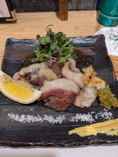 Read more西明石の隠れ家的な本格派の居酒屋さんです。 西明石駅からは徒歩8分です。駐車場は近隣のコインパーキングで車を停めました。 お店の入り口はわかり難いのでお店に電話しても良いと思います。以前にも伺ったのですが、今回も仕事で頑張った慰労会に、お一人9,000円のスペシャルコース。2時間30分の飲み放題付きで、サッポロ赤星の瓶ビールやプレミアムモルツのマスタードリームも飲み放題、また森伊蔵、魔王も一杯のみ注文出来ました。上品な前菜から始まり、旬のお魚のお造り、お肉と全て満足できる酒の肴が楽しめます。当日メニューも画像で添付してますので良かったらご参考になさってください。間違い...