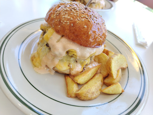 Read more日曜日の少し遅めのランチで訪問。 店内に先客は2組ほど。 おすすめだと言うBMBバーガーとコーラをオーダーした。 店員さんにお願いしてパティとベーコンを焼いているところの写真を撮りたいとお願いしてみたら快く承諾してくれた。後から気づいたがカウンター越しに撮れたらいいかなと思っていたがキッチンの中に入らせてもらって撮影させてもらえた。なんとも優しい。 出来上がったバーガーは見た目のボリュームもさることながら味も抜群にうまかった。メイプルとBBQソースの相性はよく、甘いのは甘いのだが嫌な甘さでは無くパティとベーコンの旨みを引き立てて、塩味と甘味のバランスがとても良い。 手作り感たっぷりで、まさにクラフトバーガーの真骨頂。 添えられたポテトも揚げたて熱々で、外はカリッとしながら中はホクホクで塩梅もいい。 これらの濃厚な肉の旨み✖️コーラの爽快感🟰最高のペアリングだ。 ファーストフードでは無く"ごちそうバーガー"。特別な時間を楽しめた。 支払いは現金のほか各種キャッシュ...
