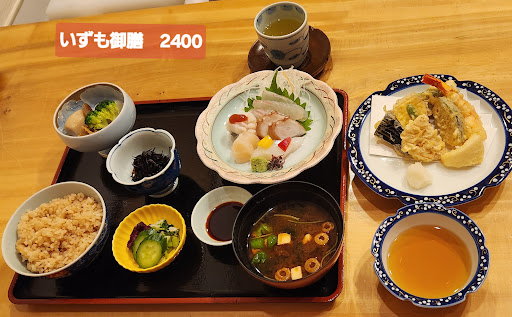 食事はどれも美味しくて満足できる内容です。 いずも御膳 2400円 割子蕎麦 950円+天婦羅 500円 天婦羅の衣はしっとり感があり私は蕎麦と一緒に食べるのでもう少しサクサクが好みです。 御膳の天婦羅の種類は多くて楽しめます。 お刺身も新鮮でハモまであって嬉しい