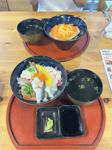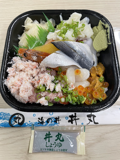 Read more初めての利用です。 花月丼¥950をテイクアウト。 花月丼は、中身が豪華で種類豊富。 覚えている具材は、 雲丹・イクラ・鮪・えんがわ・サーモン・ハマチかな、 ネギとろ・ほぐしガニ・赤海老かな・こはだ・貝柱。 まだあったかも・・・ 後は、ショウガと山葵。 ネタは、新鮮です。お買い得商品って感じです。 魚介の下処理は良いですね。 種類が多いので、もう少し醬油がほしかった、 ご飯はすし飯です。 お弁当屋さんかなと思い利用したのですが、 どんぶり専門店の、テイクアウトも出来る店舗でした。 海鮮どんぶりの種類の多さにもビックリです。 店舗の中は、15~16人程度は利用可能。 売店も有り、地元の名物を販売してました。 明石だけに、蛸の商品が多かったです。 魚住駅からは、徒歩10分程度でしょうか...
