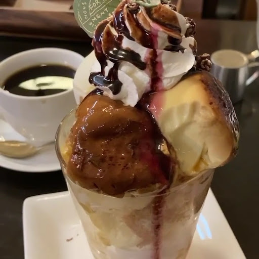 おすすめの『贅沢プリンパフェ』も要チェック。生クリーム、チョコレート、アイスクリーム、シフォンケーキが何層にも重なる中に、自家製プリンを大胆に2個もトッピングした贅沢なパフェです。見た目のインパクトはもちろん、ボリュームも満点!昔ながらのプリンには、しっかりほろ苦い自家製カラメルが!!ケーキと合わせたり、アイスと合わせたり、組み合わせを変えながら食べ進めると、最後ま...