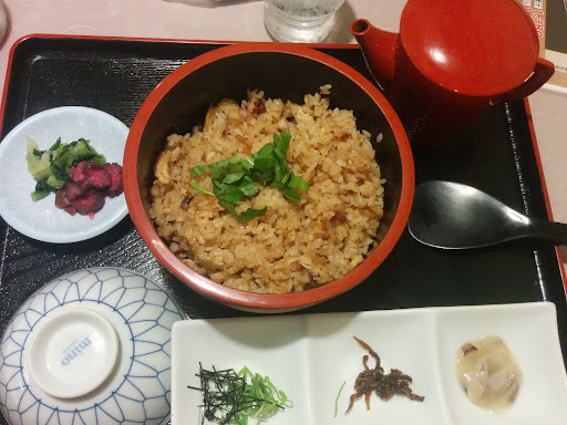 ◆料理の質 定食の刺身はマグロがくすんだ色で、サーモンは娘が一口で吐き出したほど。無理に刺身を付ける必要を感じません。 目当てのタコ飯も固くパサパサ、小さなタコを探すのに苦労するほどで、添えられた出汁もただしょっぱいだけでした。