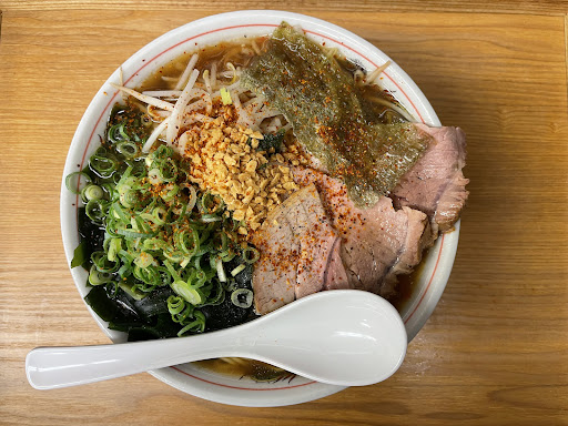 播州ラーメンのスープは甘さのパンチが利いていて、中太のちぢれ麺との絡みもいい感じです。 徳島ラーメンのようなすき焼き感を感じますが、スープはコックリ感とアッサリ感のバランスがよく、後味はスッキリしています。 このスープめちゃくちゃ好みなので、播州ラーメンブラックを頼んだらさらにハマりそうです。 チャーシューはレア感あってし食べごたえある大きさです。 1つ気になったのは、もやしが細くて短く、シャキッと感に欠けるので、トッピングにあるものだとねぎ増しをつけた方がベターかもしれません。