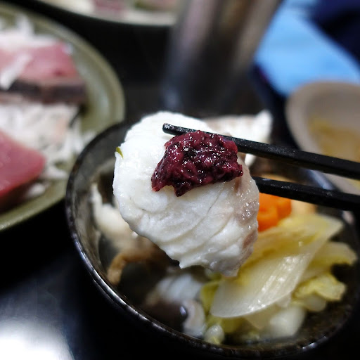 感動なのが用意するのは お鍋、鍋コンロ、取り皿だけ🥺!! 寿のお箸🥢もついてるの気分上がる♪ 鯛が思ってた以上にたくさん入ってて (写真真ん中2列全て鯛🐟💓💓) お鍋で食べるのはもったいないくらいの 新鮮で立派な鯛🐟にびっくり😳✨ これは予想を遥かに超える豪華っぷり…!! しゃぶしゃぶは5秒くらいでレア目がおいしかった🥰 柔らかさと、ぷりぷりさが最高で 練り梅もついつるんだけどこれおすすめ!!