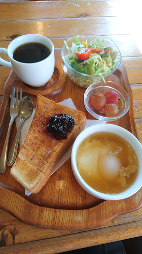 I went to this cafe with a friend by their suggestion, and I was not disappointed! The cafe itself has lovely decor, plants, and plenty of windows to let in the sunshine on a fair day. They have a little sound system set up for background music too. All the wooden furniture feels super sturdy and large, but that means it takes up a fair bit of floor space. My friend and I went when it wasn't very busy yet, but I could see this place getting crowded very quickly. We ordered breakfast sets which came with 3 different types of bread, homemade yogurt, a small salad, and a mug of soup. It was all incredibly delicious and just the right amount for me. I saw parfaits on the menu, but I held back at the time. Then, we returned on a Sunday because this place has Cake Take-out day then! On this day, you cannot eat in the cafe, but you can check out the daily sweets in the display and choose some slices to take home. I got a little slice of baked cheesecake and a white strawberry tart slice. They were quickly inhaled once I got back home. I heard this place has an online account where they post updates, but I think it would just be best to stop by in-person and see...