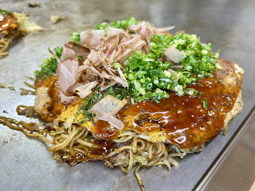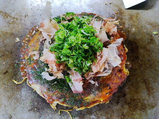Read moreお好み焼き 肉玉そばのイカ天のトッピングと 肉玉そばの生イカトッピングで注文。 生地から大きめ、キャベツはてんこ盛り 何かと具沢山でボリューミーです。 鰹節は削り節で、ネギもデフォルトです。 嫁と半分こでご提供頂きました。 この様な優しさが良いですね😊 ブラックペッパーかな?良いアクセントで とても美味しいお好み焼きですよ。 そお言えば、この地方は漬物焼きそばも有名です、...