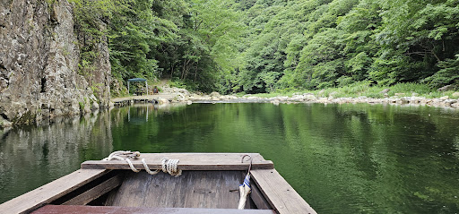 Read more2022/11/6。正面口からは通行止めということで水梨口から。少し早いかなと思いましたが紅葉は見頃でした。急勾配のある道を写真を撮りながら1時間半ほどかけ14時前にたどり着きましたが、だんだんと太陽が沈んでしまったので早めに到着できていれば良かったです。お店ではおでんと猪カレーを注文。おでんも猪で出汁を取っているとのこと。どちらも臭みはなくまろやかで美味でした。渡船は説明を挟みながら、写真を撮るポイントで停止したりとゆったり楽しませてもらいました。水は深い場所でも川底が見えるほど透き通っていました。美しいですね。 緑の季節も綺麗との事でしたのでまた来たいです。その時には正面口からの道が通れるように...