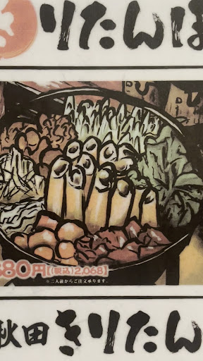 This was a disappointing restaurant. First of all, the portion sizes were small and the prices were high. The table was noticeably greasy, and even the menu was wet. Overall, the dining environment was not very comfortable. We originally came to try local Akita cuisine, but the experience did not meet our expectations. We ordered the local specialty, Kiritanpo Nabe. The menu showed the price for one person, but in reality, you must order for at least two people. This condition was written in very small text and could easily be missed. The kiritanpo is essentially grilled rice formed into sticks and soaked in soup. The soup had a soy sauce base—salty and bland. The chicken was relatively tender. The pickled radish was one of the few highlights—crisp and tasty. Also, the restaurant served a small appetizer (macaroni salad) without explaining that it would be charged, but it later appeared on the bill. Overall, I do not recommend this restaurant.