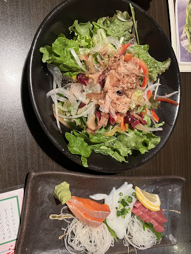 這是一間讓人失望的店家。 首先,餐點份量偏少,價格卻偏高。桌面明顯油膩,菜單甚至是濕的,整體用餐環境不太舒適。 我們原本是想品嚐秋田的在地料理才進來,但體驗不如預期。 點了秋田名物「米棒鍋(きりたんぽ鍋)」,菜單上標示的是一人份價格,但實際上需兩人起點,而且相關說明字非常小,容易讓人誤會。米棒其實就是烤過的飯捲泡在湯裡,湯頭偏鹹、味道單調,雞肉口感還算嫩,配菜的醃蘿蔔則是少數亮點,清脆好吃。 另外,店家一開始上了一道小菜(通心粉沙拉),沒說明會額外收費,最後卻出現在帳單上。 整體來說,不推薦這間店。