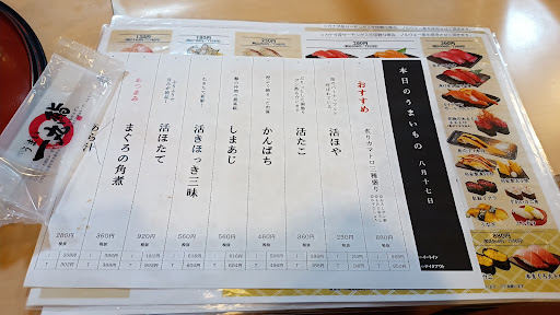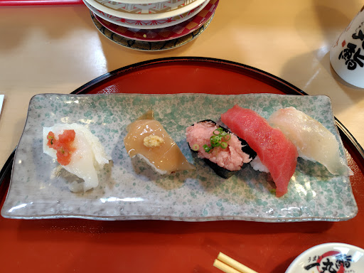 Read moreワンランク上の回転寿司🍣。 今回は日曜日のお昼12時に訪問。 安い回転寿司と違って家族連れは居なく大人のみ。そんなに混んでません。今日は3組待ち。 駐車場も空いてます。 店内ちょと高級感あり静かです。落ち着いて食べれます。😊 カウンター、ボックス席、小上がりに分かれてます。 お寿司🍣回ってません。メニューを見て紙に書いてカウンターの中の職人さんに渡します。年配の職人さん2人が握ってくれます。若い方はホール担当みたいです。 メニューも豊富です。 機械握りではなく職人さんがちゃんと握ってくれます。ネタもそこそこの厚みあり握りたてを食べれます。 ガリはテーブルにありますが小皿が1枚(醤油用)しかないのでお寿司🍣がくるまで食べれません😢 日曜日もランチメニューありランチ食べれます。 お寿司屋さんには珍しくドリンクバーがあります。 たまに職人さん間違えて注文してない品がきます😓ん?頼んだ?と思いながら、まぁ良いか!と食べていると職人さんが「あっ間違えた。すいません」と…^^;