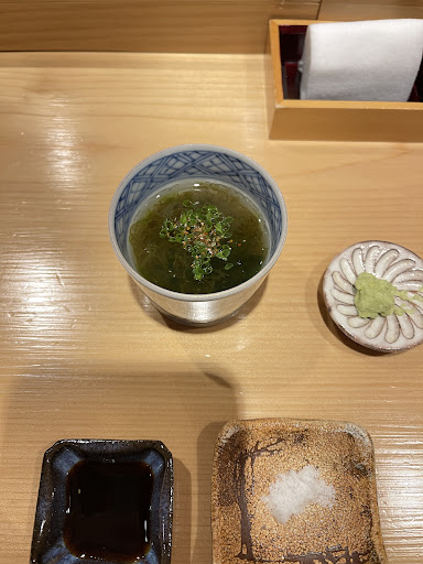 His fish are also all marinated with sauces and he provides condiments for you to dip your sushi in as well. His style is different which if you are more used to the typical omakase where you let the natural flavors of the fish come thru then this place is not for you. The salt accentuates the seafood and white fish, which I thought was perfect.
