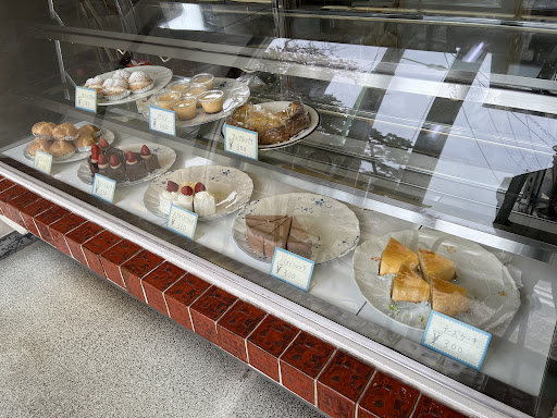 Read more駐車場停めづらい。 ガラスケースが清掃されていない。 店内は照明を落としていて暗い印象。 イートインのカウンターにいた常連の55才くらいのギョロ目おばちゃんが、横目でずっと(30秒くらい)われわれを観察(にらんでる表情)していて快適な商品選びができなかった。何であんなに凝視するのだろうか。 湿度が高くてムシムシする店内だった。 同じ日に、別のケーキ屋さんで買ったケーキと比べて、われわれの味覚では、フツーのケーキでした。 ど向かいに高校があるんだから、もっときれいに明...