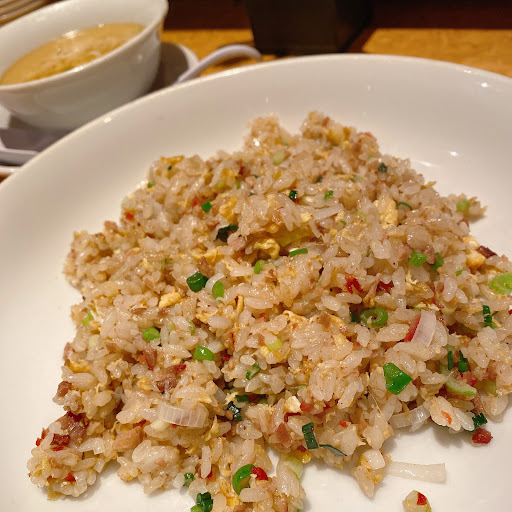喰べちゃいな炒飯(税込900円) 赤いかけらが気になる… これは外側が赤いチャーシューかな? 調べたら、赤いチャーシューは、広東風チャーシューらしいです。