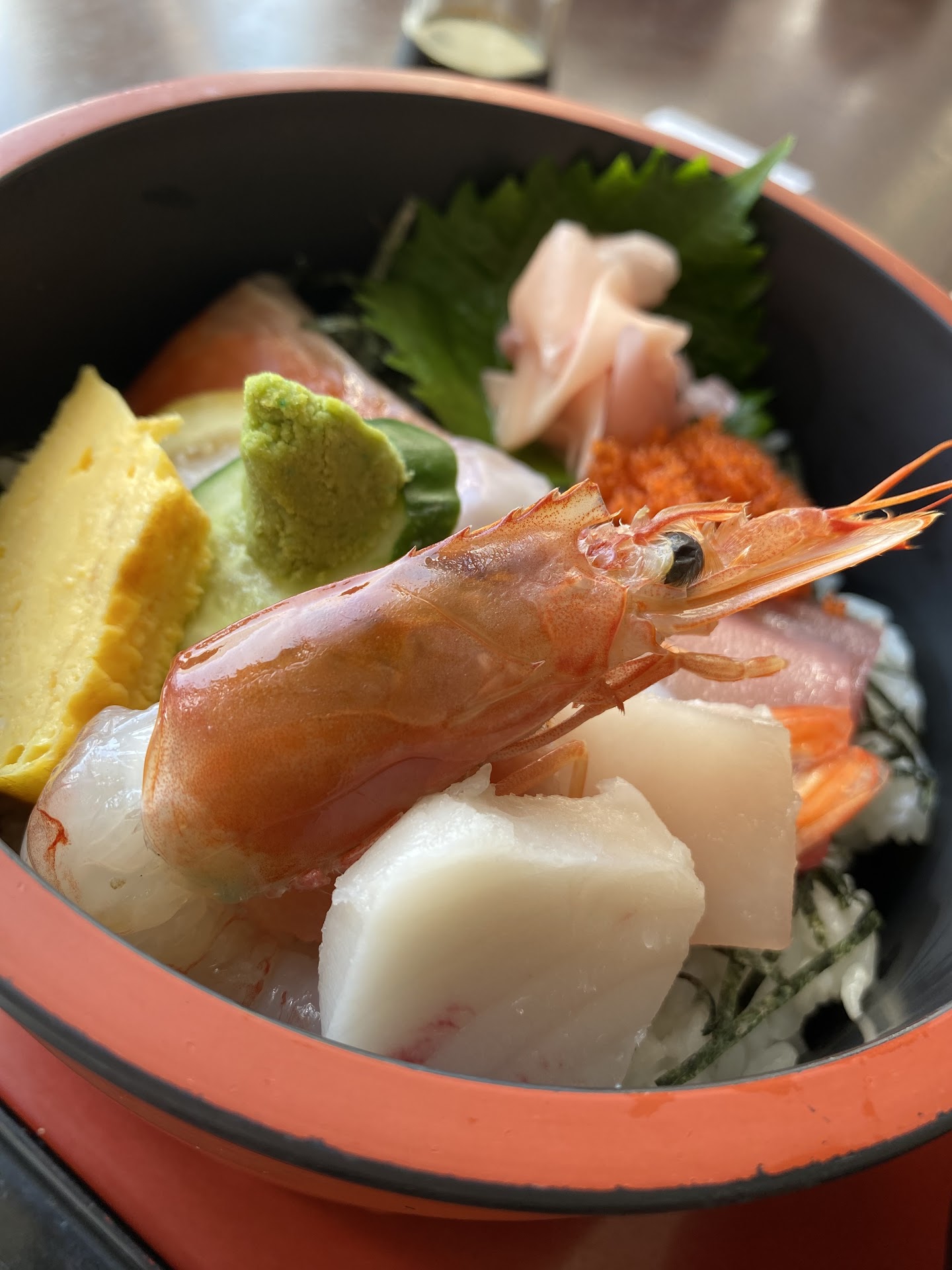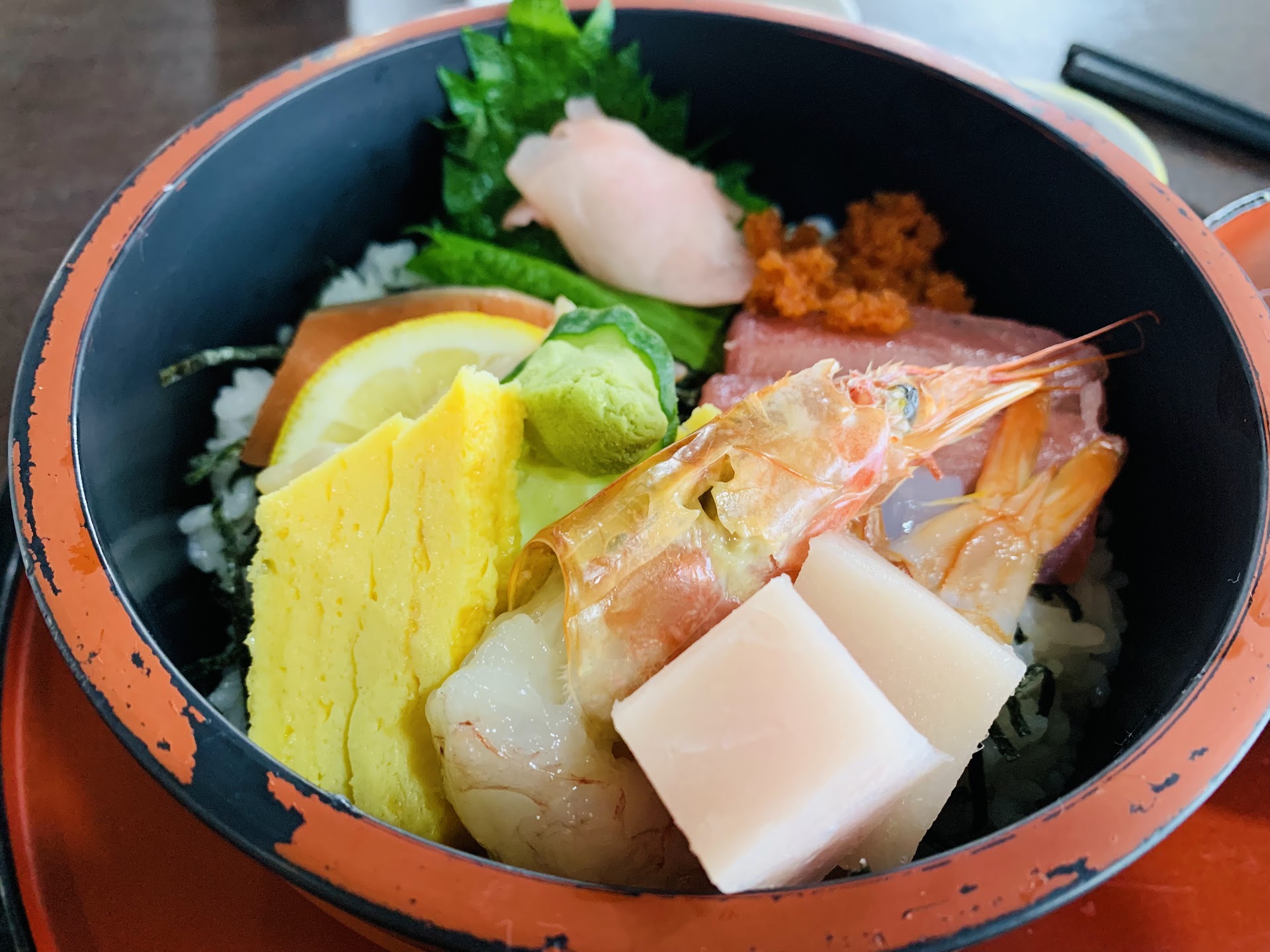 大きな甘エビを中心に2種類のマグロ、イカにタコにホタテ、そしてサーモンと卵焼きととびっこ。どれも新鮮で、素材そのものの味をしっかり堪能できます。