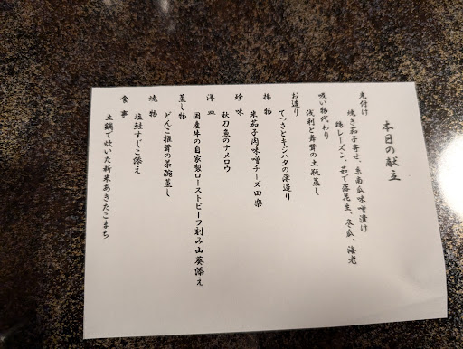 Read more秋田市は土崎にある居酒屋さんです。会社での飲み会やお客さんの接待でよく利用します。今日は送別会で利用しました。個人的にはコロナ禍前以来です。予め本日のメニューたるものが準備されています。北限のふぐもでてくるようです。日本酒も県内外有名どころが準備されており、目移りします。幹事さんが特別に新政の「No.6」を出してくれ一同で痛飲しました。シュワシュワして美味しかったです。美味しいものと旨い酒で...