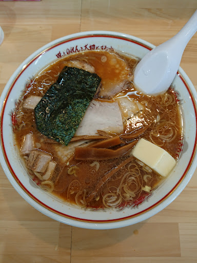 Read more昭和40年能代発祥、秋田県の老舗ラーメン屋さんの御所野店。県民で知らない人はいないほどです。カウンターとテーブル席で、食券を買ったら案内されるのを待ちます。 札幌ラーメンの店としてスタートしただけあり、味噌ラーメンがウリです。 味噌ラーメンのスープは、昭和のころの札幌ラーメンの味そのもの。とんこつベースで、よく野菜や肉のダシが引き出されていてコクがあります。最近流行りの店の味噌ラーメンのように、とにかく味が濃くてエッジがあるラーメンとは真逆です。 野菜味噌ラーメンは、キャベツ・もやしなどを焦げ目がつくくらい炒めた野菜がのっており、強く炒められた野菜の香ばしい香りがスープにうつり、美味です。 この味噌ラーメンにはトッピングのバターがとても合います。さっぱり系のときは抜きで、濃い味噌ラーメンを食べたいときは追加がよいです。人に会う予定がないならばニンニクを2~3匙加えたら、そうそうコレコレと言いたくなる味...
