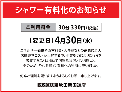 スポーツジムとの併設店ですが、シャワーは有料という、快活CLUBで流行りつつある形態なので、シャワーは無料にしてほしいです。