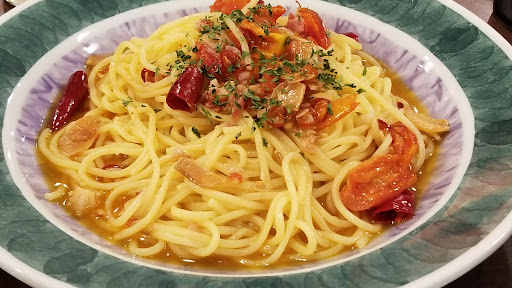 Read more今日は家族3人でお邪魔しました。 スペシャルコースは、前菜3種盛り(ベーコンのフリッタータ、ペコリーノチーズのシーザーサラダ、トマトのモッツァレラのブルスケッタ)とぷりぷり海老とアボカドのトマトクリームパスタ(麺変更でフィットチーネ)、アイスコーヒー、チョコムースとキャラメルのタルト。もう一セットはセミドライトマトの辛口ペペロンチーノ。単品で黄身3個を使った特濃カルボラーナ。 トマトクリームパスタはフィットチーネがちょっと茹ですぎ?でソースが絡みずらいし食べずらかったけど、味は抜群でした。辛口ペペロンチーノは全然辛くない、ドライトマトの甘さなのか気になる甘さ。カルボラーナはさすが卵黄3個!超濃厚でした。でもこれもパスタ茹ですぎでソースが全然絡まない。 タルトはチョコムースとアイスのバランス良くて好きでした。...